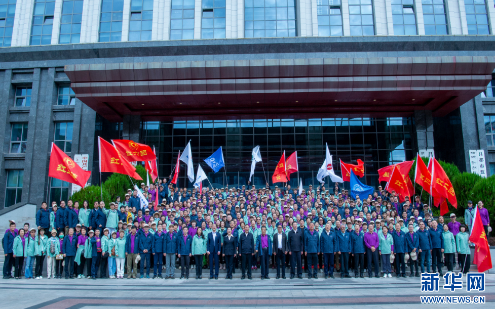 7月8日,來(lái)自北京200余家醫(yī)療單位的453位醫(yī)護(hù)人員和100余位愛(ài)心志愿者合影。新華網(wǎng) 旦增努布 攝
