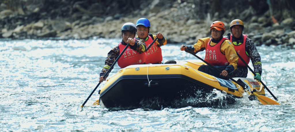 船槳與水的激烈碰撞,成就了扎史品初對水的駕馭;橡皮艇與浮力的抗擊中,扎史品初挑戰(zhàn)自然,又融入自然。
