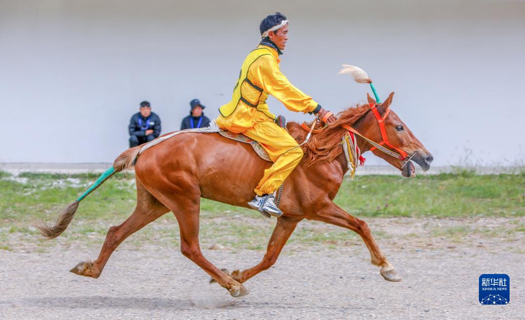 8月11日,索朗亞培在走馬比賽的決賽中沖刺。新華社發(fā)(旦增努布攝)