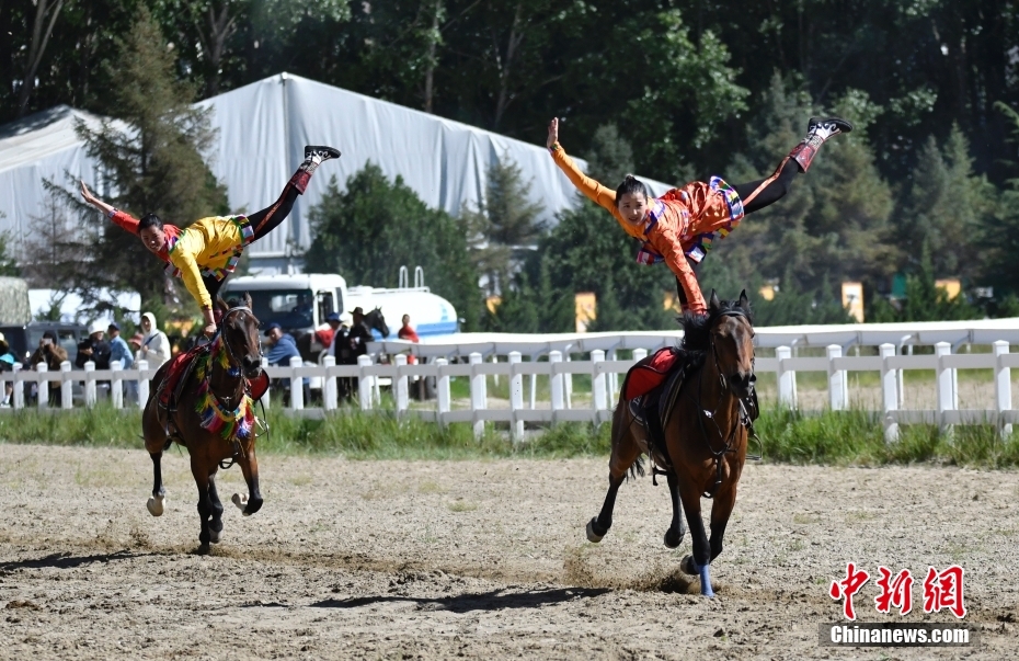8月17日,騎手們進(jìn)行馬術(shù)表演。當(dāng)日,2023年拉薩雪頓節(jié)民族傳統(tǒng)馬術(shù)表演在西藏拉薩市北郊賽馬場舉行。