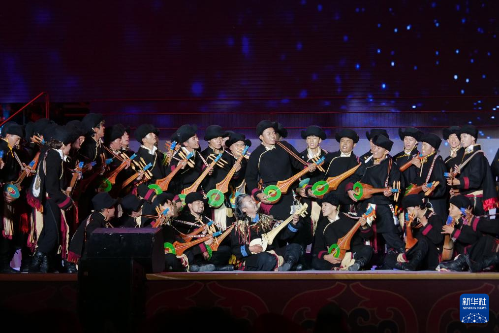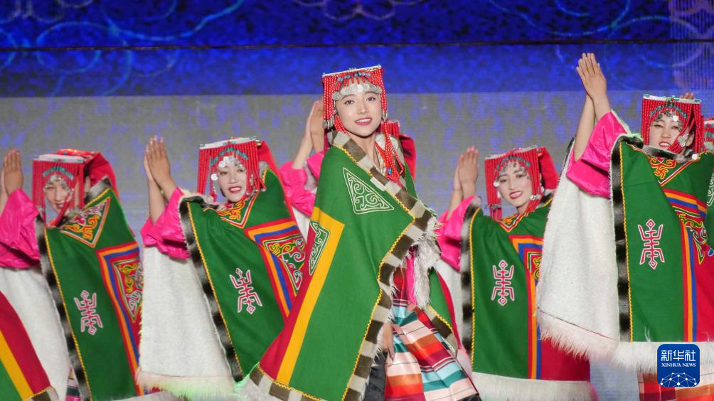 第八屆象雄文化旅游節(jié)開幕式現(xiàn)場的文藝表演(8月21日攝)。新華社記者 劉文博 攝