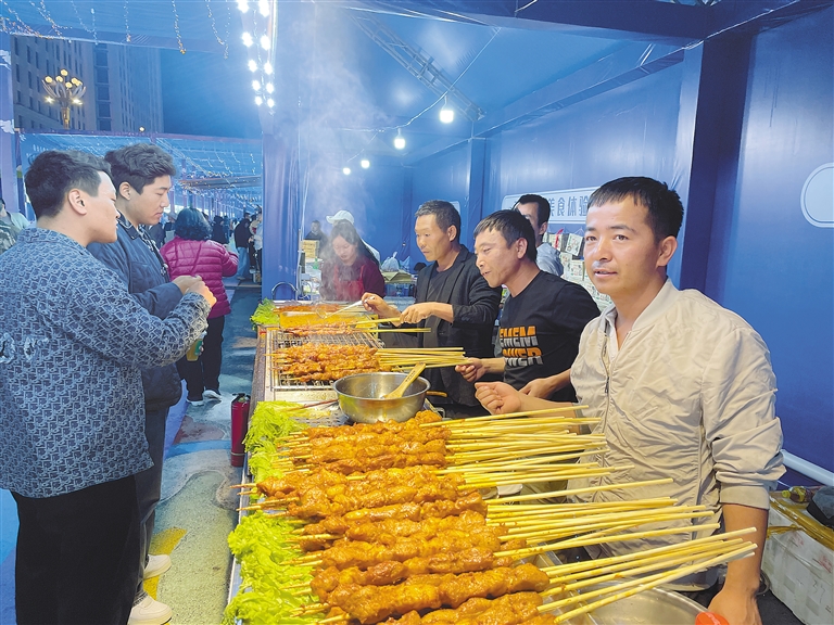 市民和游客在美食街消費(fèi)、參觀。記者 李洲 攝