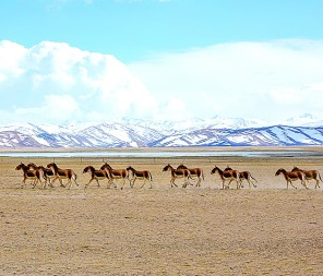 普蘭縣境內(nèi)奔跑在雪山下的成群藏野驢。劉曉東攝/光明圖片