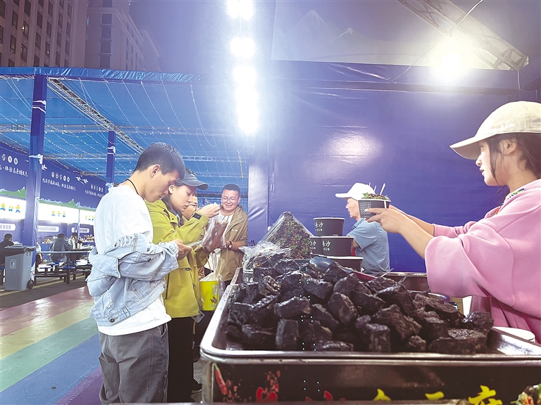 圖為西藏味道美食體驗(yàn)周活動(dòng)中,市民、游客在選購美食。記者 李梅英 攝