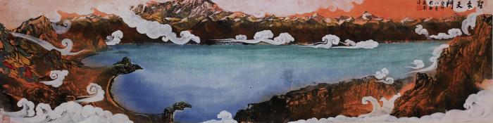 圖為劉洋國(guó)畫作品描繪的納木錯(cuò)圣象天門景觀?!⒀?供圖