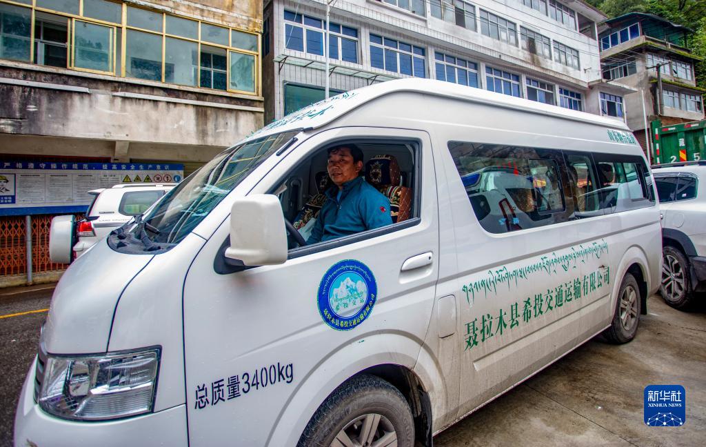 駕駛員旦增尼瑪運(yùn)營的旅游車負(fù)責(zé)接送中國游客往返樟木口岸與聶拉木縣城(9月9日攝)。樟木口岸恢復(fù)客運(yùn)功能后,他每天都要在這條線路上跑4、5個(gè)來回。新華社記者 姜帆 攝