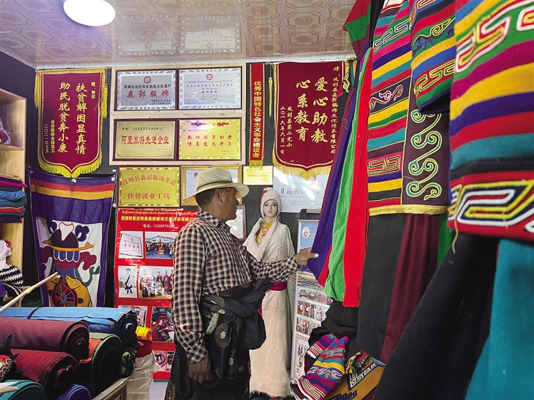 邊巴瓊吉是努拉的小女兒,今年以優(yōu)異的成績(jī)考上了湖南師范大學(xué),她表示,由于家里人都會(huì)制作“森郭服飾”,她從小就對(duì)這種服飾有很深的感情?!皩?duì)我來說,‘森郭服飾’是童年里最艷麗的色彩。逢年過節(jié),我都會(huì)穿上爸媽手工制作的‘森郭服飾’,別的小朋友都特別羨慕我?!边叞铜偧χf,“每一件‘森郭服飾’都是爸媽精心制作的,一針一線里包含了他們對(duì)于傳統(tǒng)服飾的堅(jiān)守,也讓我認(rèn)識(shí)到傳承這門手藝的重要性,以后有機(jī)會(huì)我也想成為守護(hù)‘森郭服飾’的一員?!?/p>