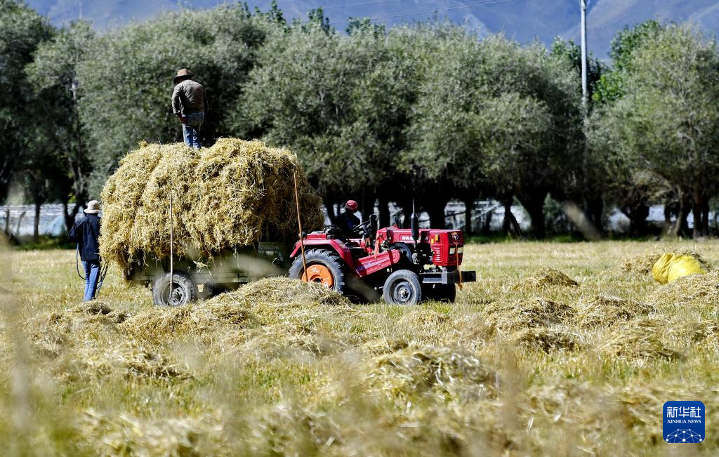 近日,西藏拉薩市曲水縣青稞成熟,人們忙著收割青稞,感受豐收的喜悅。