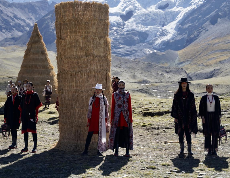 以雪域高原的藍(lán)天白云為幕,以廣袤無(wú)垠的高山草甸為毯,以金光燦燦的青稞裝飾為景……9月17日上午10時(shí)許, 來(lái)自上海金山的時(shí)裝品牌:沙涓“雪域·回響”喜馬拉雅大秀在西藏日喀則江孜縣乃欽康桑雪山下舉行,向現(xiàn)場(chǎng)觀眾呈現(xiàn)了一場(chǎng)西藏氆氌手工藝大秀,并通過(guò)視頻直播全球首發(fā),展現(xiàn)非遺復(fù)興。