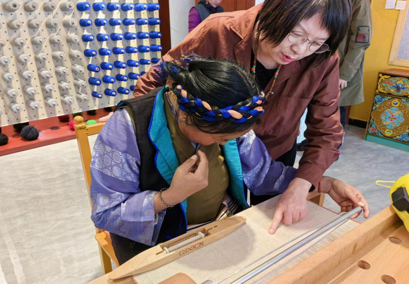算上這次,已是郭秀玲今年第九次進(jìn)藏了。在上海援藏干部聯(lián)絡(luò)組的幫助下,作為“上海工匠”產(chǎn)業(yè)援藏第一人,從去年7月開(kāi)始,郭秀玲和團(tuán)隊(duì)開(kāi)始深入西藏腹地,與日喀則江孜當(dāng)?shù)氐霓r(nóng)村合作社、地毯廠溝通交流、相互學(xué)習(xí),逐一走訪鄉(xiāng)村手工作坊,并改造氆氌織機(jī),既保留了西藏元素,又與時(shí)代潮流相結(jié)合。2022年11月,沙涓時(shí)裝和江孜縣簽約手工工坊項(xiàng)目?!拔覀児餐铝τ谕苿?dòng)當(dāng)?shù)貍鹘y(tǒng)的牦牛絨、羊絨等非遺氆氌手工織品走向國(guó)際市場(chǎng),打造屬于日喀則的國(guó)際高端品牌,更好展現(xiàn)藏文化魅力,助力非遺的‘活性傳承’?!闭劶暗浇螐?fù)興西藏氆氌工藝的初衷,郭秀玲如是說(shuō)。