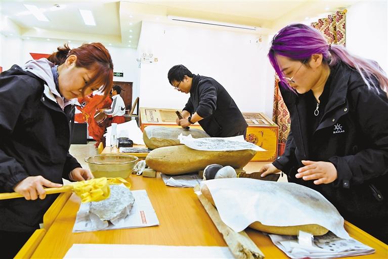 復(fù)旦大學(xué)圖書館中華古籍保護(hù)研究院師生在昌都市洛隆縣歷史文化陳列館內(nèi)拓印當(dāng)?shù)厥?。洛?攝