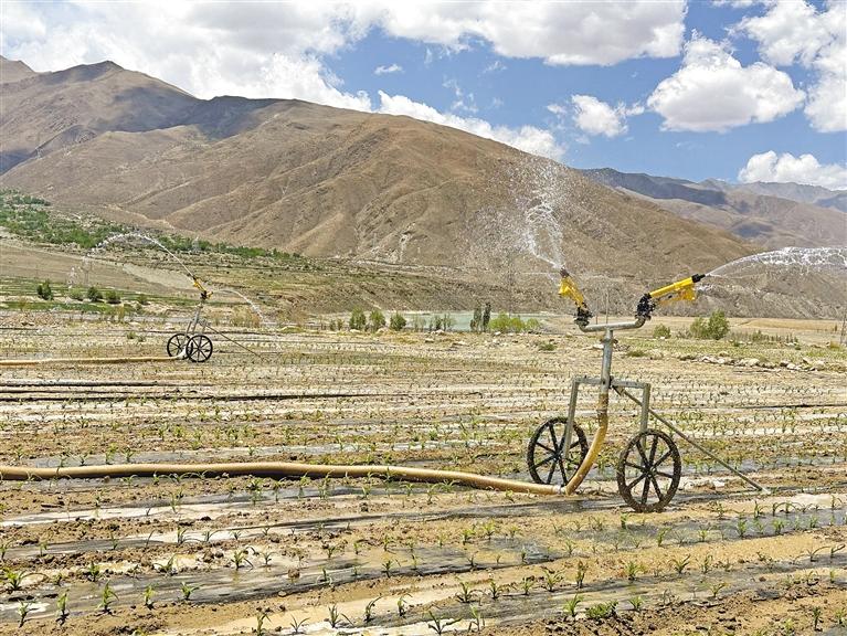 “這些土地,過去沙化太嚴(yán)重,無法保存水分,我們經(jīng)過不斷的翻耕改良后,才有了目前的這850畝土地?!蔽鞑厍睾剔r(nóng)業(yè)綜合開發(fā)有限公司工作人員洛珠達(dá)瓦介紹。