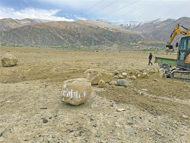 洛珠達(dá)瓦打開手機(jī)中的相冊(cè),他指著挖石頭的視頻說:“雅魯藏布江沿岸土地中的石頭太多了,有些石頭重達(dá)幾噸,根本無法種植任何農(nóng)作物。為了撿石頭、挖石頭,我們每天從村里雇10多個(gè)人來干活?!?/p>