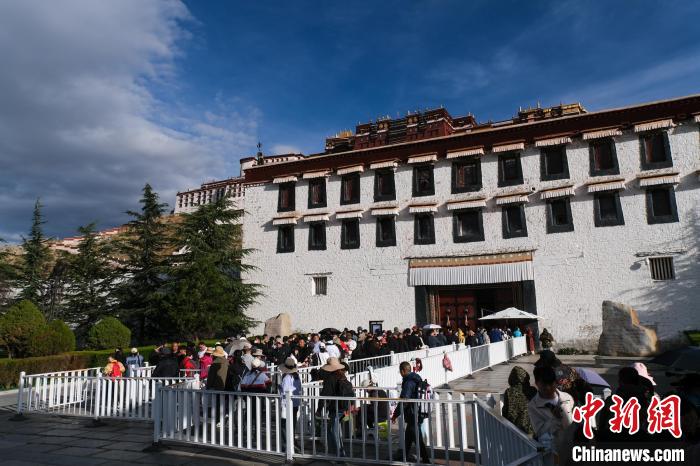 圖為“雙節(jié)”期間,游客排隊進入布達拉宮參觀。江飛波 攝