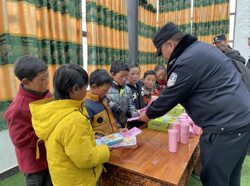 民警入校送溫暖。洛桑元旦攝