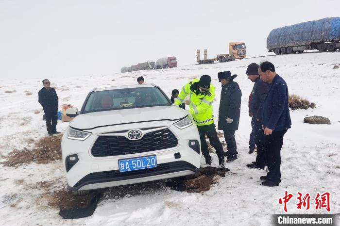 圖為西藏安多警方對被困唐古拉山埡口的車輛進行施救。安多縣公安局 供圖