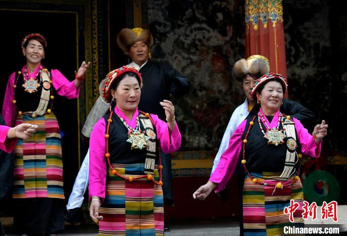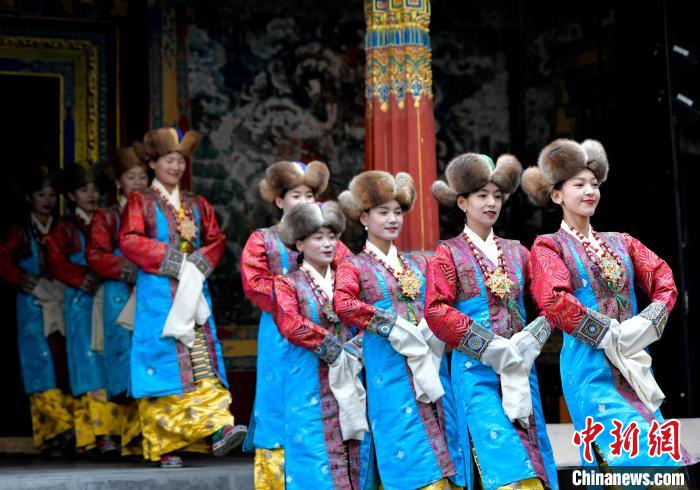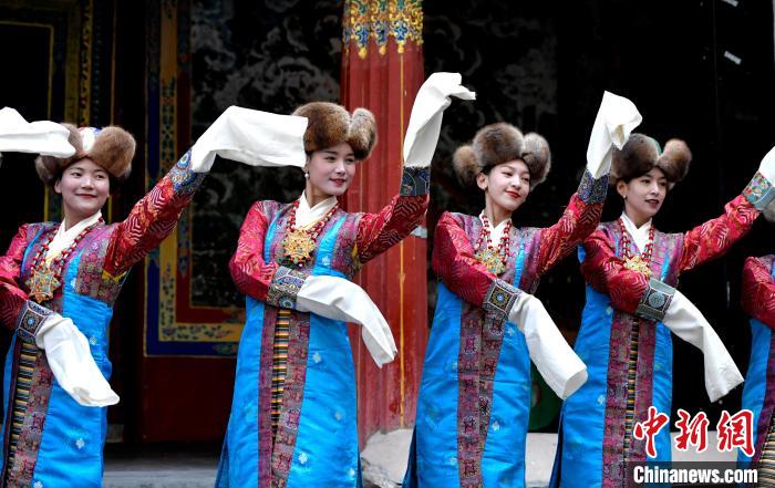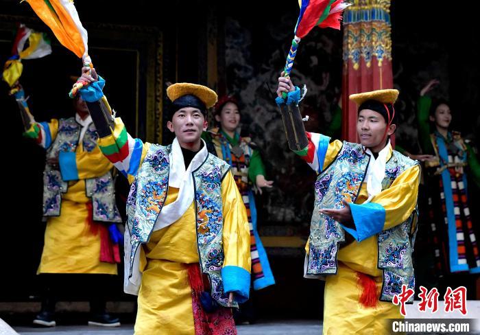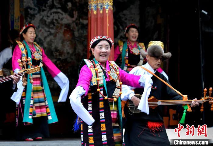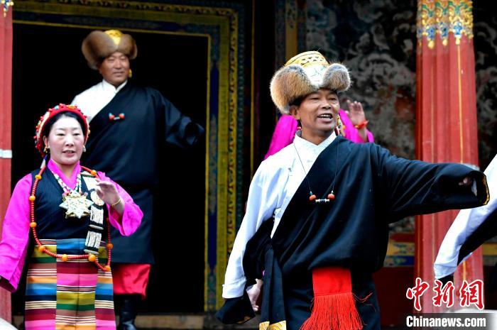 據(jù)悉,堆諧最早流傳于日喀則,是由扎念琴樂器伴奏的舞蹈。扎念琴是堆諧“邊彈、邊唱、邊舞”表演風(fēng)格形成的關(guān)鍵。作為日喀則市桑珠孜區(qū)的重要非遺項目之一,堆諧以其獨特的表演形式,受到了眾多觀眾的喜愛。日喀則市諧欽則起源于1883年,其韻調(diào)古樸,表現(xiàn)獨特,顯示出濃郁的西藏風(fēng)景和鮮明的地方特色。諧欽演員們精湛的表演技藝、華麗的戲服,將古老的西藏歌舞藝術(shù)完美呈現(xiàn)在這座古建筑前。