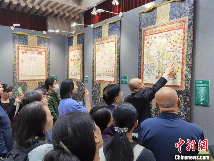 中國(guó)藏學(xué)研究中心北京藏醫(yī)院院長(zhǎng)仲格嘉在開(kāi)幕式上致辭表示,起源和根植于中華民族的藏醫(yī)藥,是中國(guó)中醫(yī)藥學(xué)寶庫(kù)中的一顆璀璨明珠,迄今已有3800多年發(fā)展歷史。在藏醫(yī)學(xué)史上,形成了別出心裁的藏醫(yī)唐卡,以浩瀚畫卷,形象生動(dòng)、系統(tǒng)描繪了藏醫(yī)藥學(xué)的體系框架、基礎(chǔ)理論、臨床實(shí)踐技法,以及藏醫(yī)史、醫(yī)德醫(yī)風(fēng)、養(yǎng)生保健等內(nèi)容。除實(shí)用價(jià)值外,藏醫(yī)唐卡還有很高的民族學(xué)、歷史學(xué)、宗教學(xué)及美學(xué)價(jià)值,堪稱“學(xué)習(xí)藏醫(yī)藥學(xué)的百科全書”。