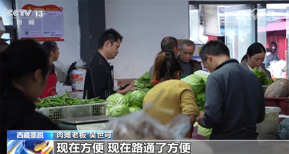 餐飲店經營者 張森:剛開店的時候,食材每天都要從波密自己開車去拉。早上六點鐘從墨脫縣就出發(fā),來回要晚上十點鐘才能到墨脫。吃一次魚是很難很難的,路太難走了,車也走得慢,魚拉過來都會死掉,時間太長了?,F在不用去波密買菜,都在我們這邊菜市場采購就行了,買一個多小時買完了?,F在完全不一樣,翻天覆地的變化,路也好了,生活物資也跟得上,水果那些也很豐富。
