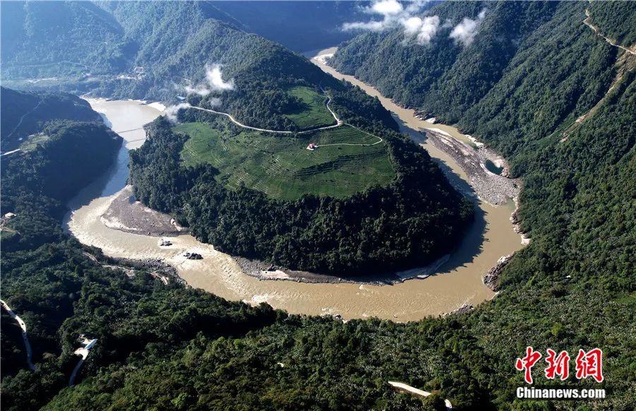 西藏林芝市墨脫縣雅魯藏布江果果塘大拐彎,景色雄奇壯觀。(無(wú)人機(jī)照片)李林 攝