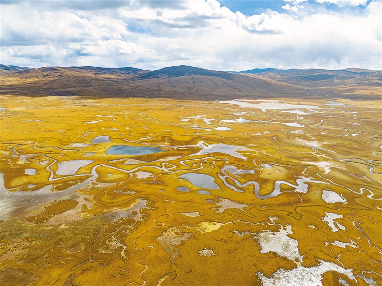 位于昌都市貢覺縣的拉妥濕地(無人機拍攝)。新華社記者 孫非 攝