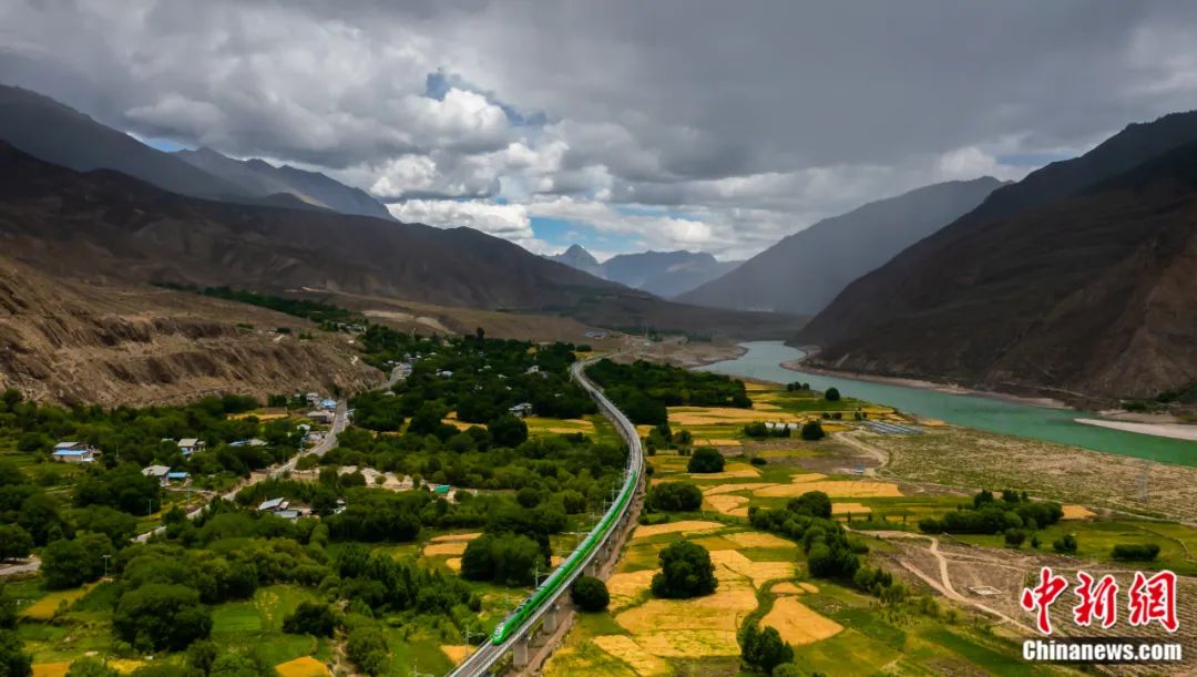 川藏鐵路拉林段高原復(fù)興號(hào)通過西藏林芝朗縣堆巴磄。魏方合 攝