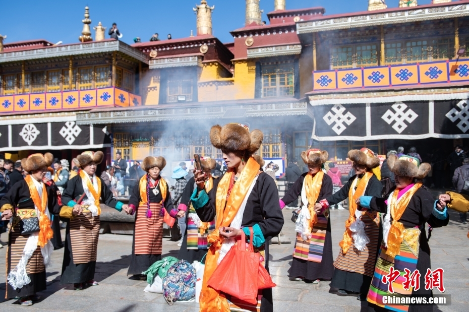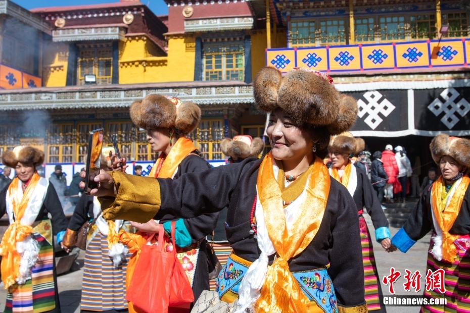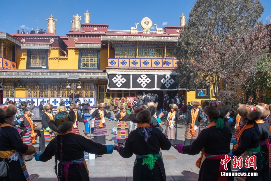 11月15日,西藏拉薩,拉薩婦女在扎基寺跳起傳統(tǒng)舞蹈,迎“仙女節(jié)”?!跋膳?jié)”即吉祥天母節(jié),藏語(yǔ)稱(chēng)“白來(lái)日追”。相傳藏傳佛教最高護(hù)法神之一班丹拉姆的女兒白拉姆,不顧母親的反對(duì)與赤尊贊私定終身,班丹拉姆一怒之下將赤尊贊趕到拉薩河南岸,規(guī)定二人僅每年的藏歷十月十五日相見(jiàn)。中新社記者 貢嘎來(lái)松 攝