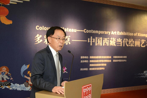 新加坡中國文化中心兼中國駐新加坡旅游辦事處主任肖江華在致辭中表示,此次展覽以藝術(shù)的方式呈現(xiàn)了欣欣向榮的當代西藏社會發(fā)展,相信這將為促進中新兩國文化交流與合作、增進兩國的了解和友誼發(fā)揮積極作用。