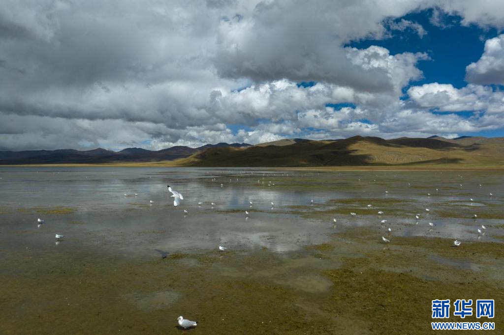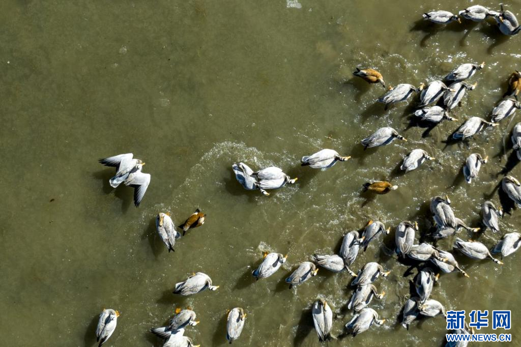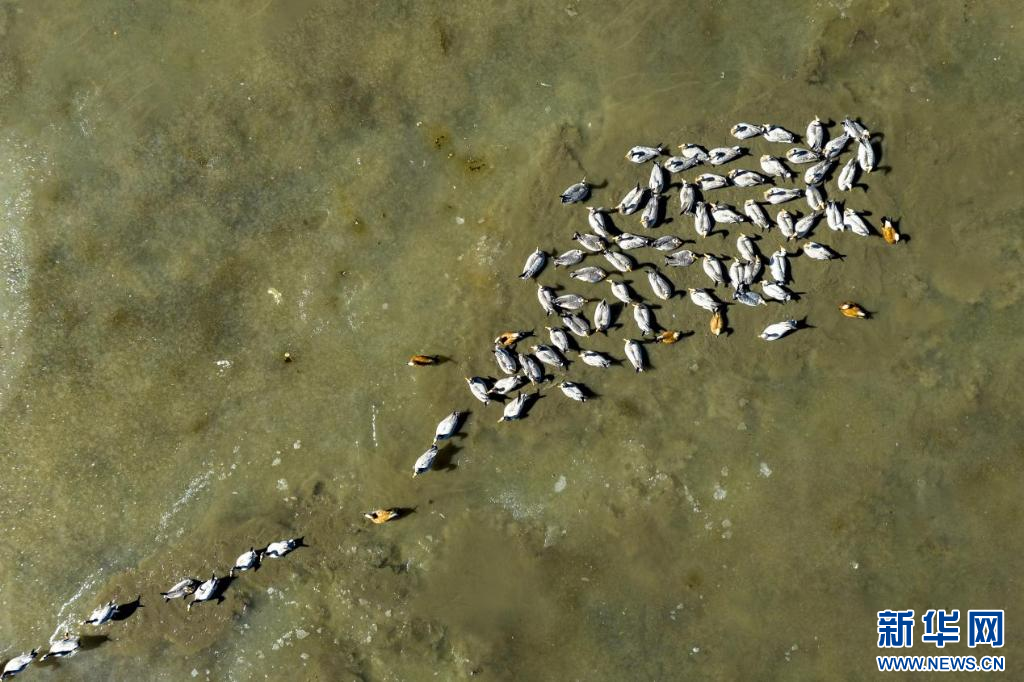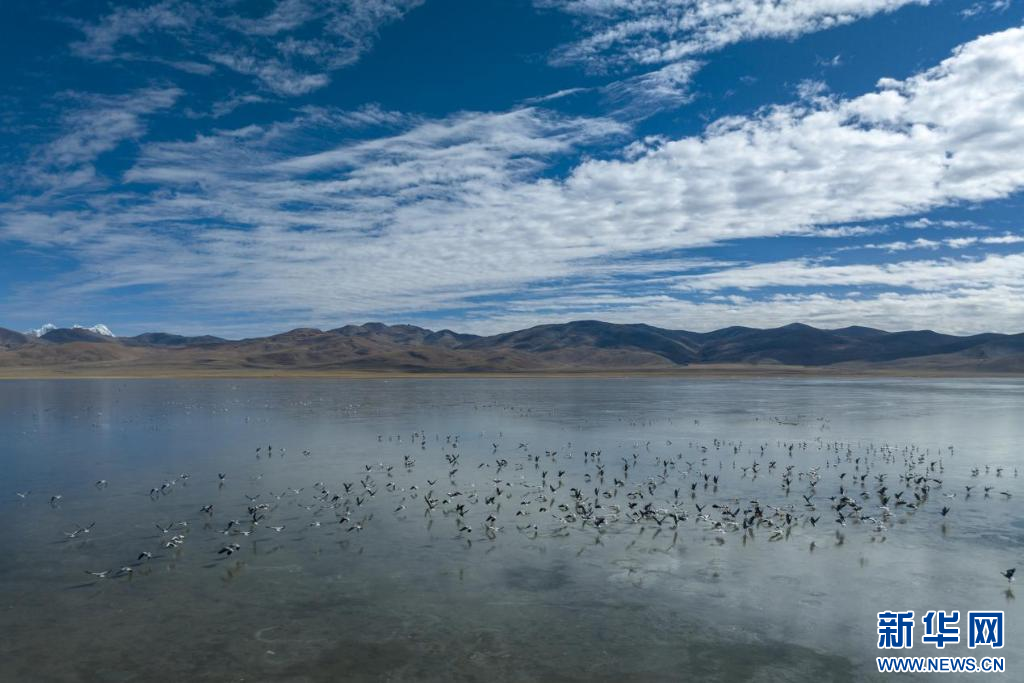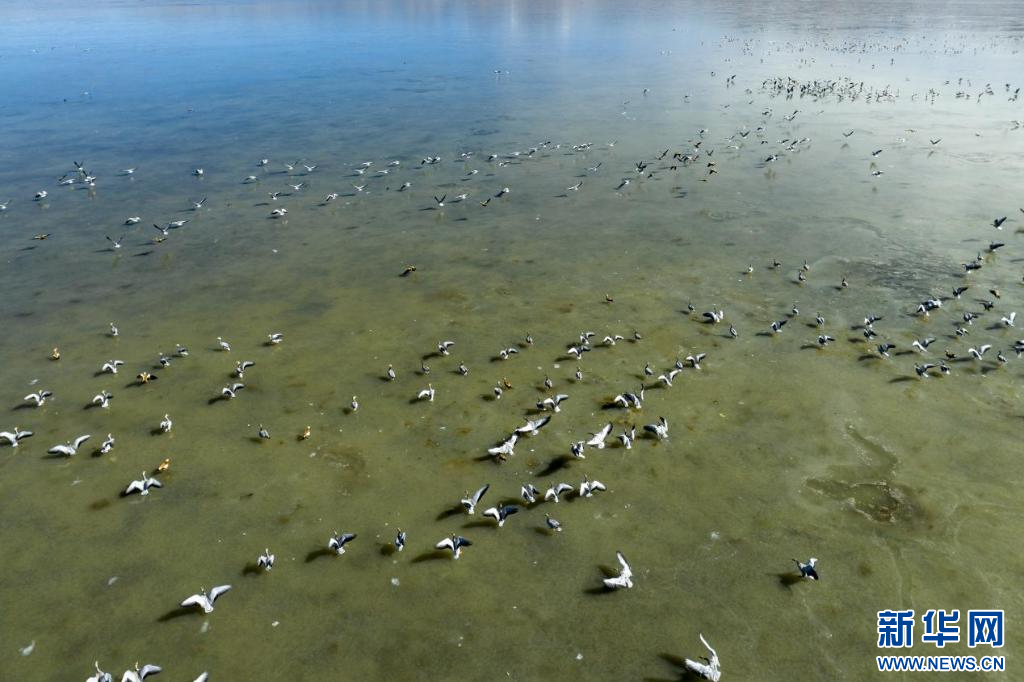 11月17日,在哲古湖拍攝的鳥群(無人機(jī)照片)。新華網(wǎng) 旦增努布 攝