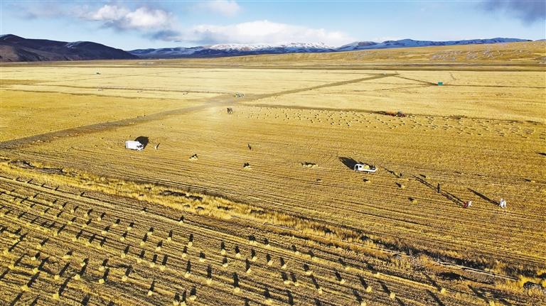 圖為金色的羌塘草原迎來(lái)牧草豐收。 記者 趙書(shū)彬 攝