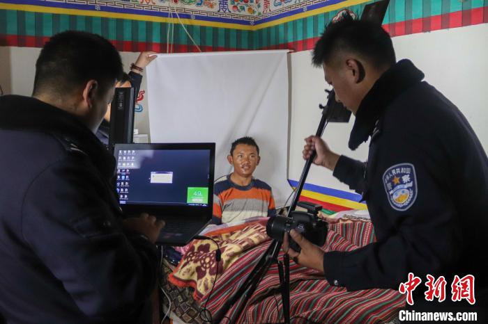 圖為日土邊境派出所民警上門為出行不便的民眾辦理證件。任博 攝