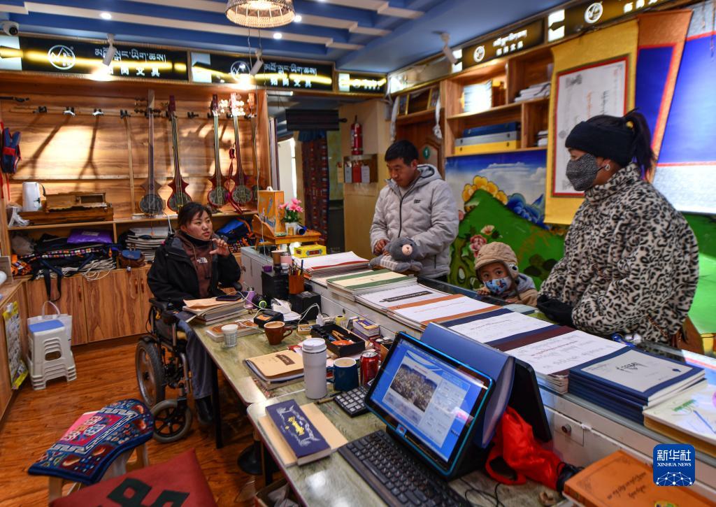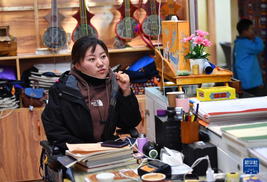 29歲的拉薩姑娘卓嘎因小兒麻痹落下殘疾,她在覺列的公司里學習了藏文書法,還成為拉薩八廓商城一個藏文書法和扎念琴體驗班的負責人,最多的時候要為150名孩子授課?,F(xiàn)在她每月稅前收入有大約9000元。