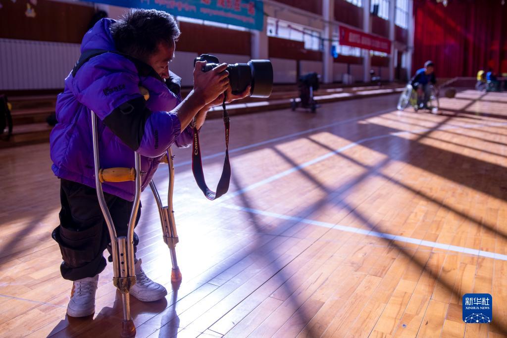 拉巴頓珠在拍攝輪椅籃球訓練(11月26日攝)。新華社記者 姜帆 攝