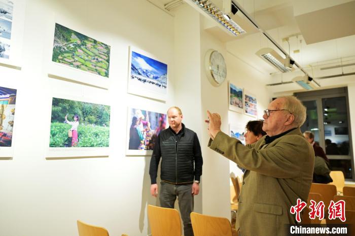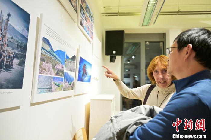 維也納商會(huì)市場部主席馬庫斯·漢茨(Markus Hanzl)參觀“和美西藏”攝影展。歐洲時(shí)報(bào)記者 周修怡 攝