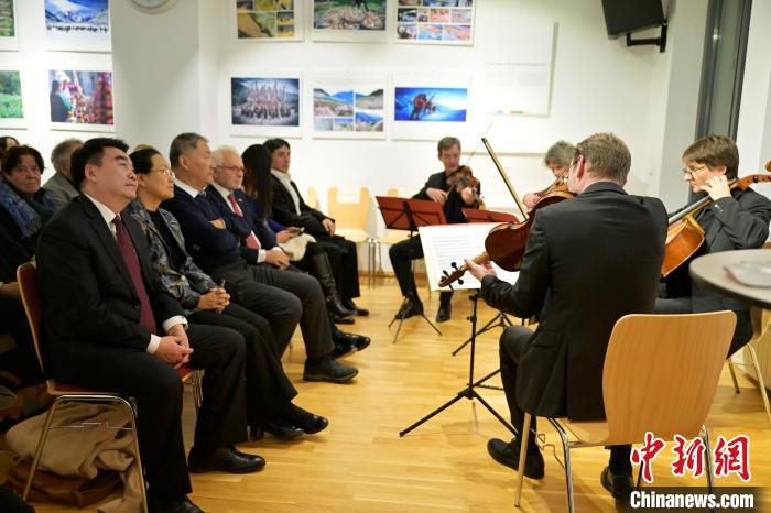 奧地利萊興菲爾德四重奏樂隊(duì)( Lerchenfeld-Quartett)在“和美西藏”攝影展開幕式上演奏小約翰·施特勞斯的《皇帝華爾茲》。歐洲時(shí)報(bào)記者 周修怡 攝