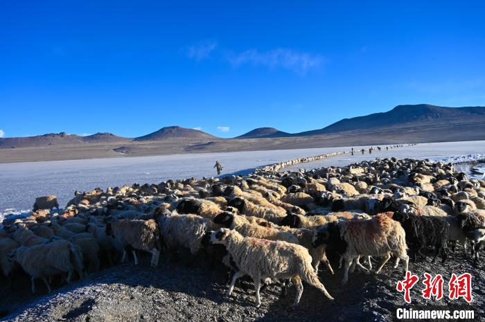 資料圖 :2023年2月,普姆雍錯(cuò)冰湖趕羊。趙朗 攝
