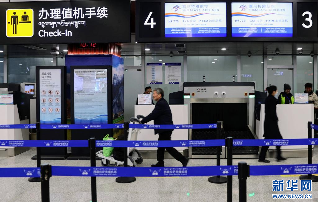 出境旅客正在拉薩貢嘎國際機(jī)場辦理出入境相關(guān)手續(xù)。新華社記者姜帆 攝