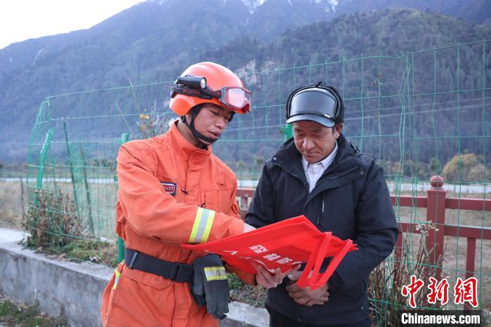 圖為指戰(zhàn)員正在向村民講解防火知識(shí)。趙健宇 攝
