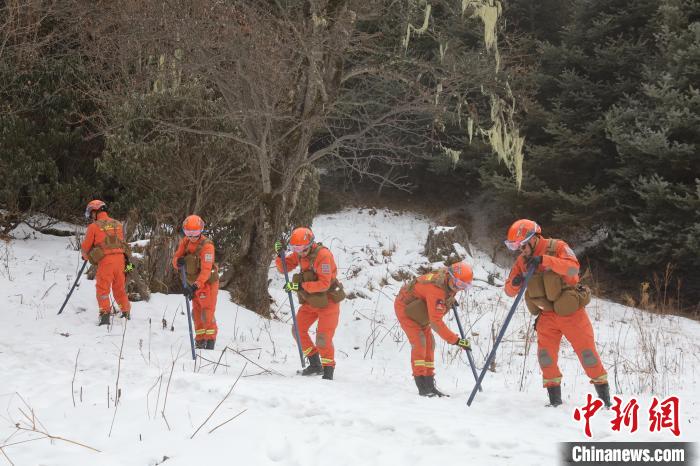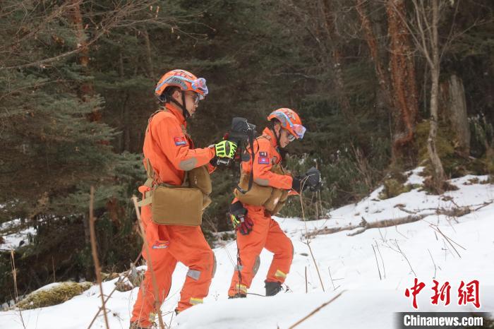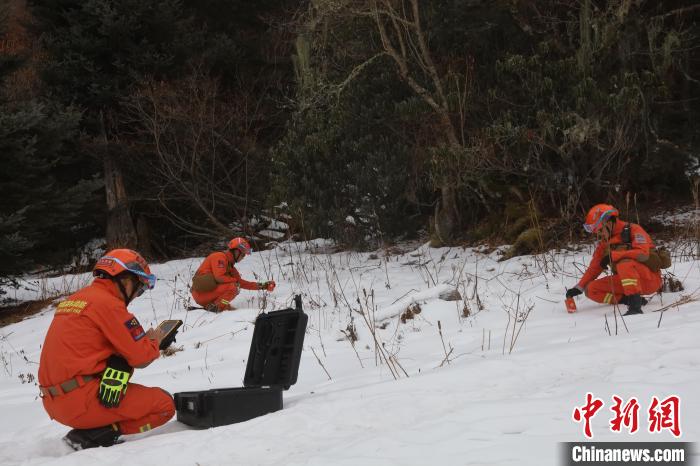 圖為森林消防隊員正在使用儀器進行搜索。袁永斌 攝