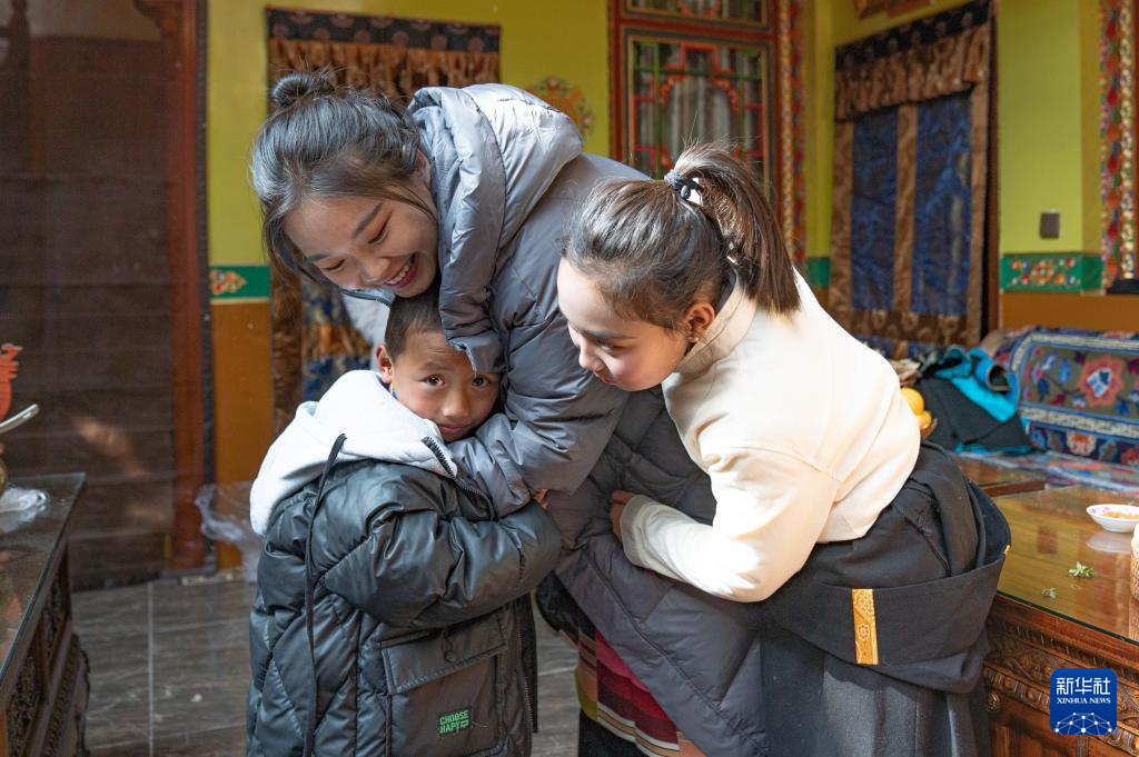 后來我們又去莫拉家拍攝了團(tuán)圓飯、換新藏裝等場(chǎng)景。拍攝時(shí),我需要穿藏裝和巴桑莫拉的女兒進(jìn)行互動(dòng),而當(dāng)天日喀則的氣溫已經(jīng)到了零下,她發(fā)現(xiàn)我的雙手冰涼后,全程都用自己的手捂著我的手,想讓我暖和一點(diǎn)。拍攝結(jié)束以后,小朋友們也圍在我身邊抱著我,想用自己的方式給我傳遞一點(diǎn)溫暖。