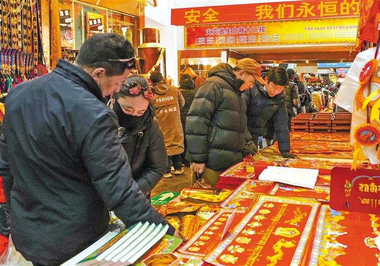 圖為市民在八廓商城內(nèi)購買春聯(lián)。記者 丹增群培 攝