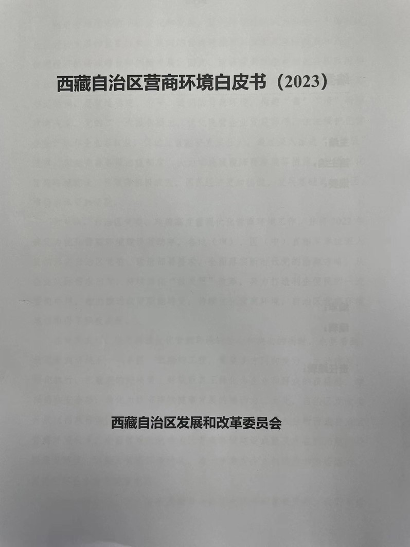 《西藏自治區(qū)營商環(huán)境白皮書(2023)》涵蓋了西藏自治區(qū)、各地(市)營商環(huán)境建設(shè)成效,以及“西藏自治區(qū)優(yōu)化營商環(huán)境十大典型案例”,全面總結(jié)了西藏自治區(qū)打造“四最”營商環(huán)境的首創(chuàng)經(jīng)驗和典型做法。