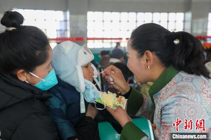 春運(yùn)首日,拉薩車務(wù)段在日喀則站候車大廳開展“溫馨出行 文明出行”主題活動(dòng),火車站青年職工帶來了日喀則當(dāng)?shù)靥厣顝棾?,并為旅客送上溫暖的甜茶,和旅客一起分享蛋糕慶祝日喀則站第十個(gè)春運(yùn)等活動(dòng),營(yíng)造出喜迎新春的節(jié)日氛圍。
