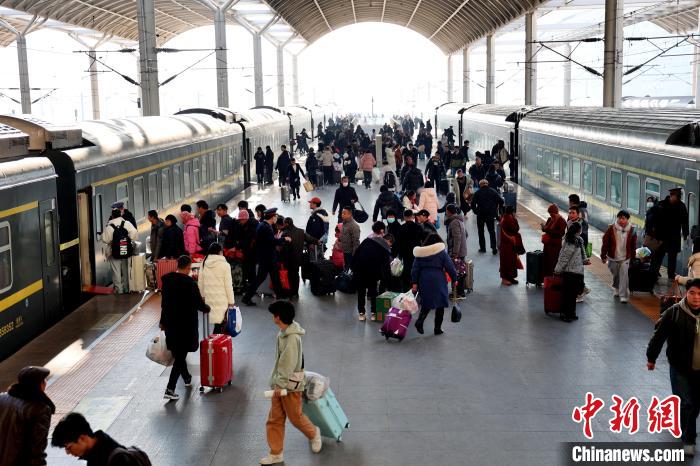 圖為1月26日,青海省西寧火車站站臺,旅客正在進行換乘。祁增蓓 攝