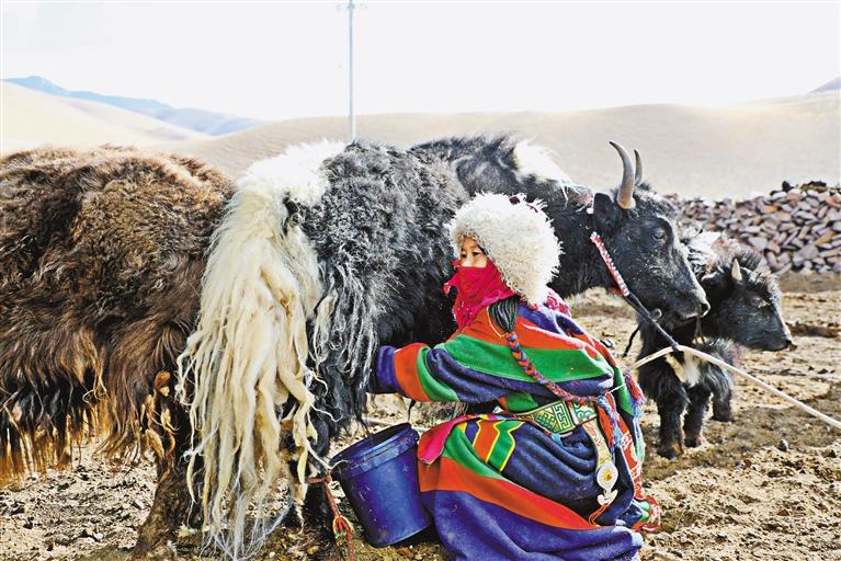 “這些都是咱們村合作社的牦牛,我們給合作社放牧、擠奶、制作酥油和奶渣,不僅有務(wù)工補(bǔ)貼,年底還能分紅。去年,我們家總收入有6.7萬(wàn)元左右,日子真是越過(guò)越有盼頭了?!倍静輬?chǎng)上,正在放牧的牧民桑嘎卓瑪高興地說(shuō)。