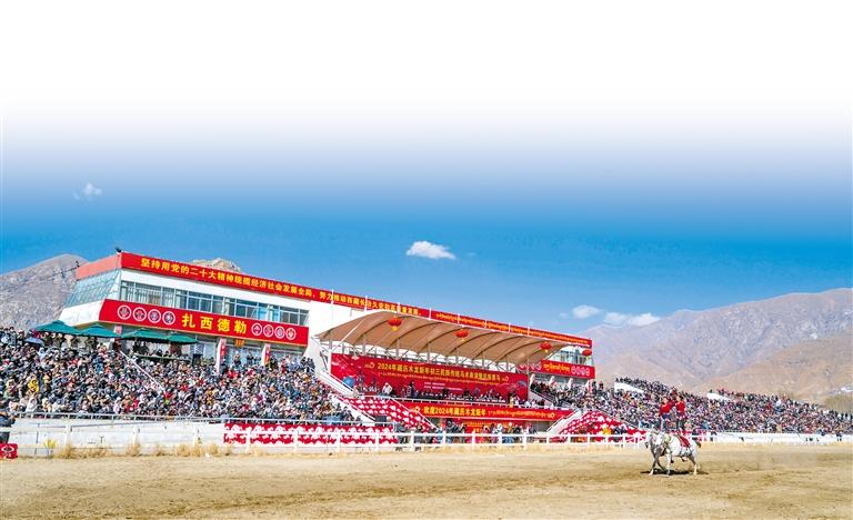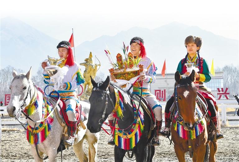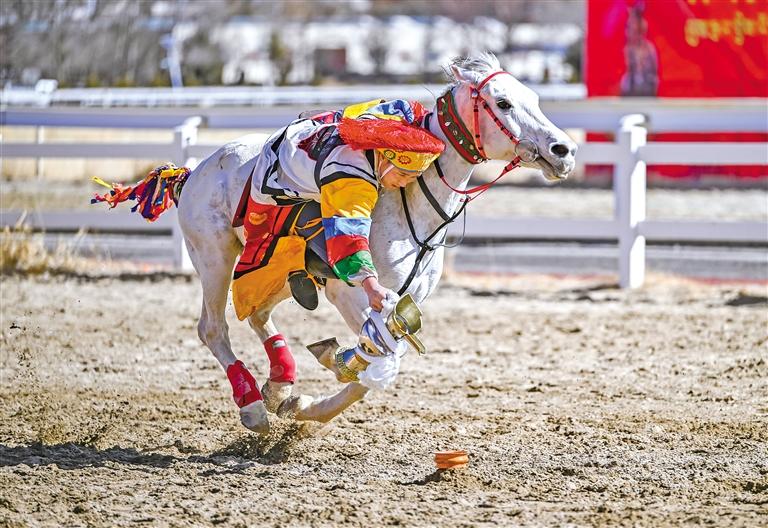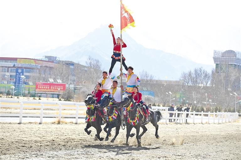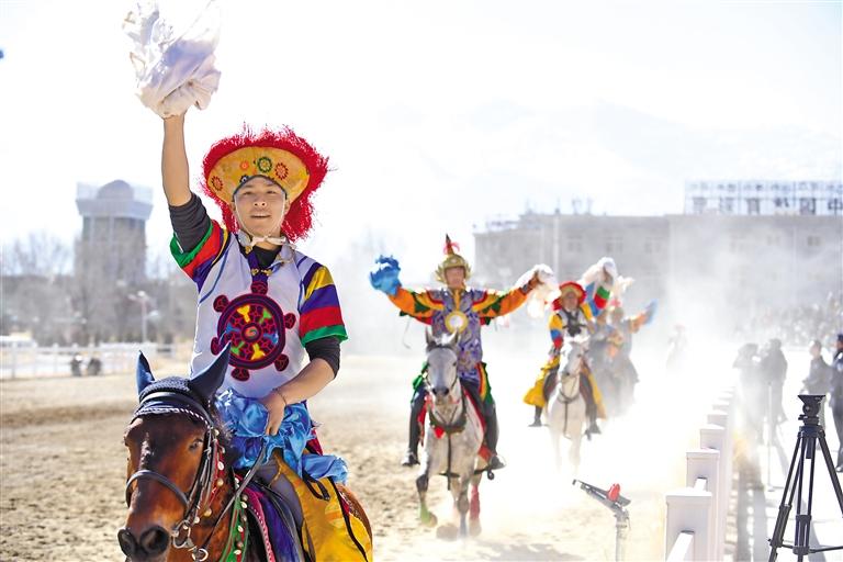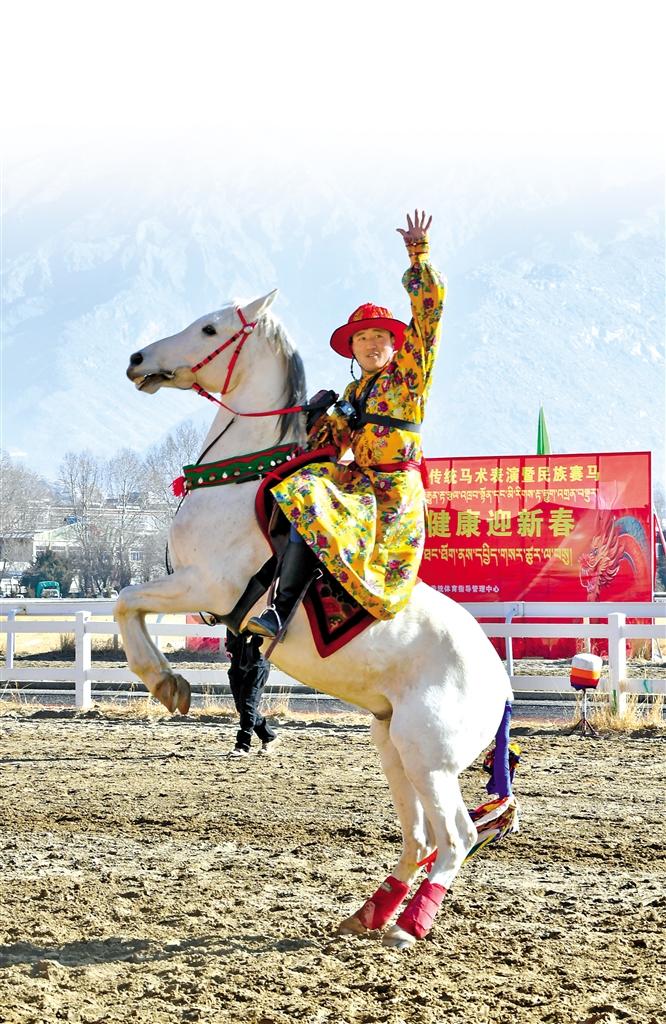 2月12日藏歷新年初三,主題為“體育大拜年,健康迎新春”的民族傳統(tǒng)馬術表演暨民族賽馬活動在拉薩賽馬場舉行。