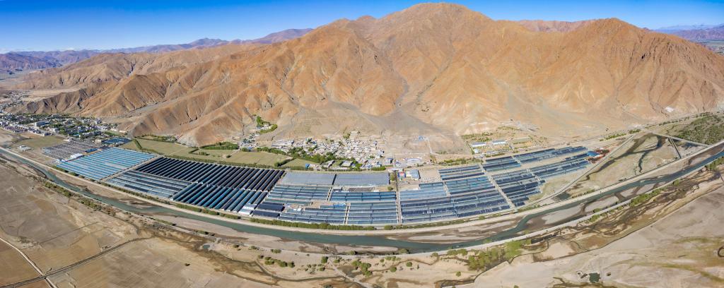 白朗縣日喀則珠峰現(xiàn)代農(nóng)業(yè)科技創(chuàng)新博覽園(無人機拼接照片,2023年5月28日攝)。新華社記者 姜帆 攝