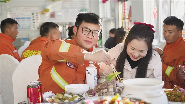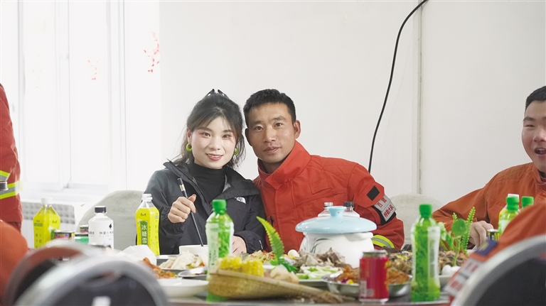 在大隊(duì)里,孫再藏與妻子一起包餃子、貼春聯(lián)、看春晚,和消防員們共同歡度佳節(jié)。除夕夜,孫再藏和妻子手挽著手,在操場上漫步。妻子抬頭看著丈夫,眼中充滿了驕傲和溫柔。她說:“你們過年還挺熱鬧的,好好站崗值班,家里不用擔(dān)心,有我呢?!?/p>