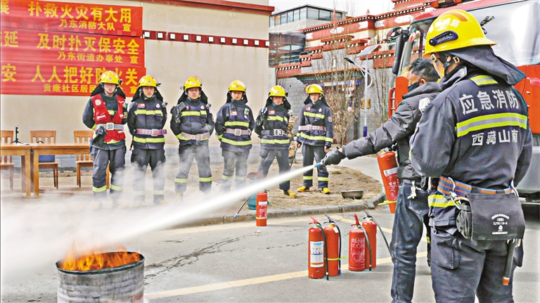 乃東區(qū)消防救援大隊來到乃東街道貢康社區(qū),組織駐村工作隊、網(wǎng)格員、群眾開展消防應(yīng)急演練,進(jìn)一步提升群眾火災(zāi)防范意識和應(yīng)急處置能力。圖為消防員正在指導(dǎo)群眾進(jìn)行滅火實操。