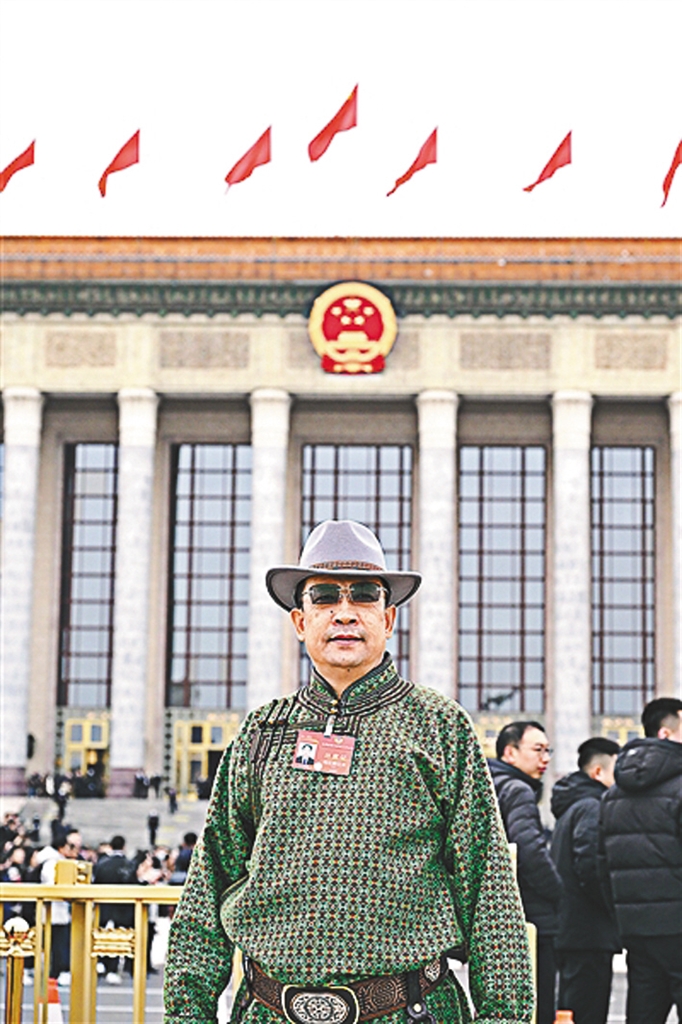 全國政協(xié)委員、內(nèi)蒙古錫林郭勒盟蘇尼特左旗烏蘭牧騎隊長 阿拉騰達(dá)來
